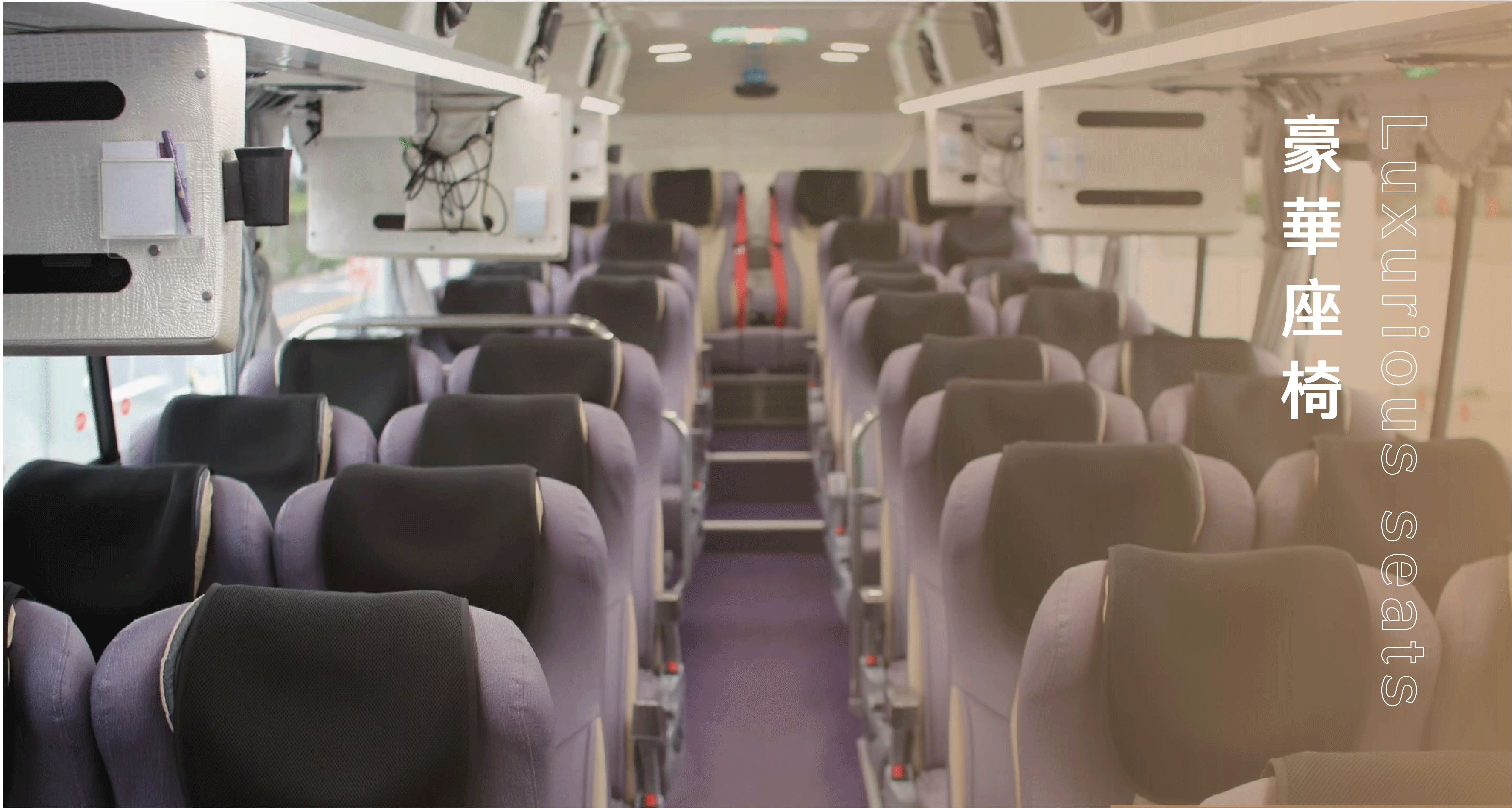 車內搭載高品質影音設備,支援DVD播放與無線麥克風 結合環繞音響與卡拉OK系統,讓旅途充滿互動與歡笑。